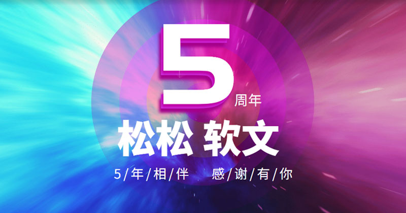 一路走来,弥久历新,5年相伴共筑未来,松松软文5周年,携手松松商城感恩大回馈,优惠多多福利多多。活动时间2020-8/5-2020-8/28活动